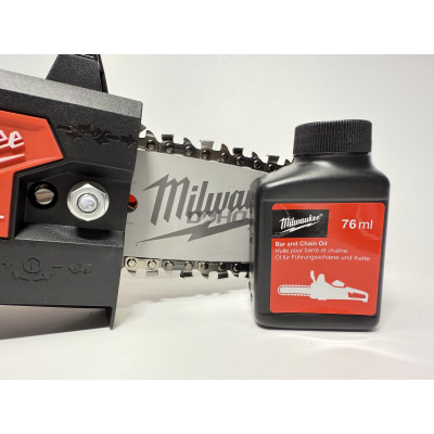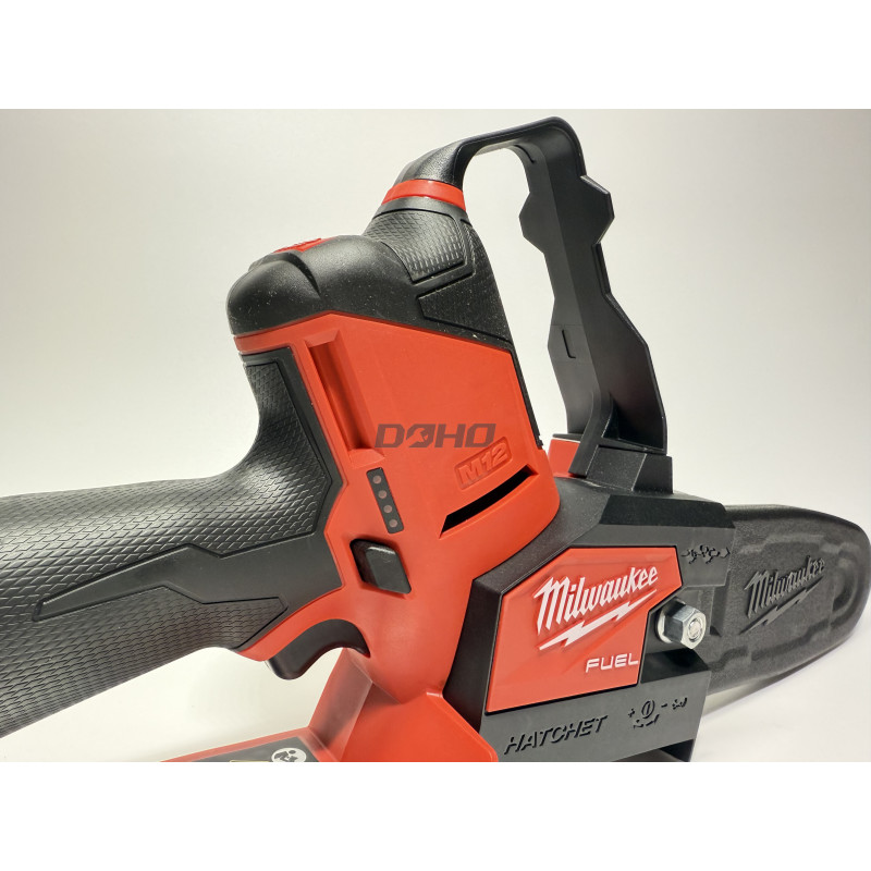 Powerful cordless top-handle chainsaw for pros. Cuts hardwood fast – up to 150 cuts in 10×10 cm cedar on one M18 8.0Ah battery. Full throttle in under 1 sec with FUEL™ tech. Lightweight, one-hand design ideal for arborists. Metal bucking spikes for better control, tool storage onboard, and easy chain tensioning. Includes chain, 30 cm bar, 76 ml oil, and bar cover. Battery and charger not included. Compatible with all M18™ batteries.