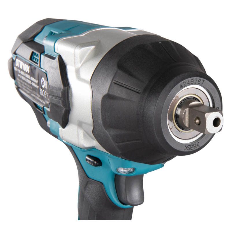 Makita DTW1004Z is a powerful 18V LXT® cordless impact wrench with brushless motor, 1/2" square drive, and 3-stage torque control (170 / 250 / 1050 Nm). Max nut-busting torque: 1300 Nm. Dual LED lights, tool hook included. Ideal for heavy-duty industrial use. Battery and charger not included.
