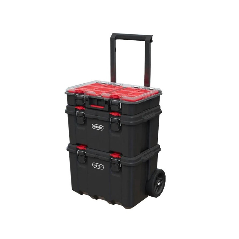 Prekės ženklas- Keter. Modelis- STACK N ROLL. Artikulas- 251493. Ilgis- 52.5 cm. Plotis- 41.1 cm. Aukštis- 55.5 cm. Svoris- 4.74 kg. Medžiaga- Plastikas. Spalva- Juoda, Raudona. Su ratukais- Taip. Su rankena- Taip. Atsparumas vandeniui- Ne. Su užraktu- Taip.