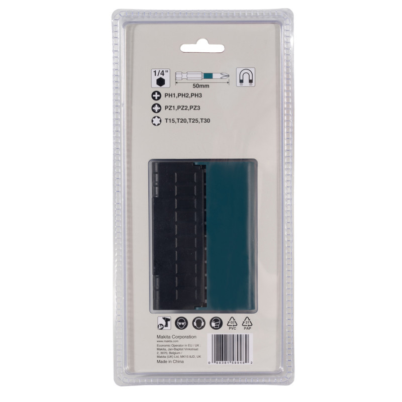 Sukimo antgalių rinkinys suktuvams. Pakuotėje yra IMPACT BLACK MZ antgaliai, kurių ilgis yra 50 mm (PH1, PH2, PH3, PZ1, PZ2, PZ3, T15, T20, T25, T30). Iš viso 10 dalių, supakuotų į dėklą.