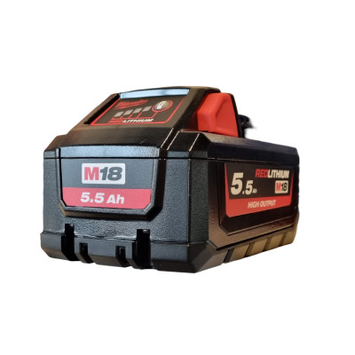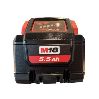 The Milwaukee M18 HB5.5 Battery is a high-performance 18V lithium-ion battery with a capacity of 5.5 Ah, providing extended runtime for your tools. Designed with REDLINK Intelligence, it ensures optimal power delivery and battery protection from overheating or overloading. Built for tough job site conditions, this battery is ideal for professionals looking for reliable, long-lasting power. Whether you're working on construction sites or home projects, the Milwaukee M18 HB5.5 provides you with consistent and efficient energy for all your M18 tools.
